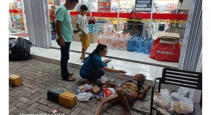 MINUT Gemasulut – Bupati Minahasa Utara (Minut) Joune Ganda, merespon cepat selamatkan oma yang terlantar yang ada di depan alfamart dekat rumah sakit Sentra Medika