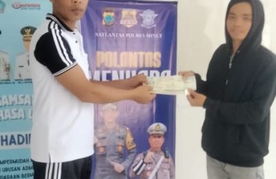 Satlantas Polres Minut Realisasi Polantas Menyapa Serahkan BPKB dan TNKB