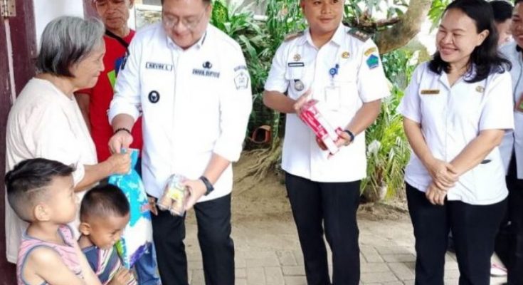 Wabup bertemu langsung dengan anak anak stunting di desa wori sekaligus berikan bantuan sembako.